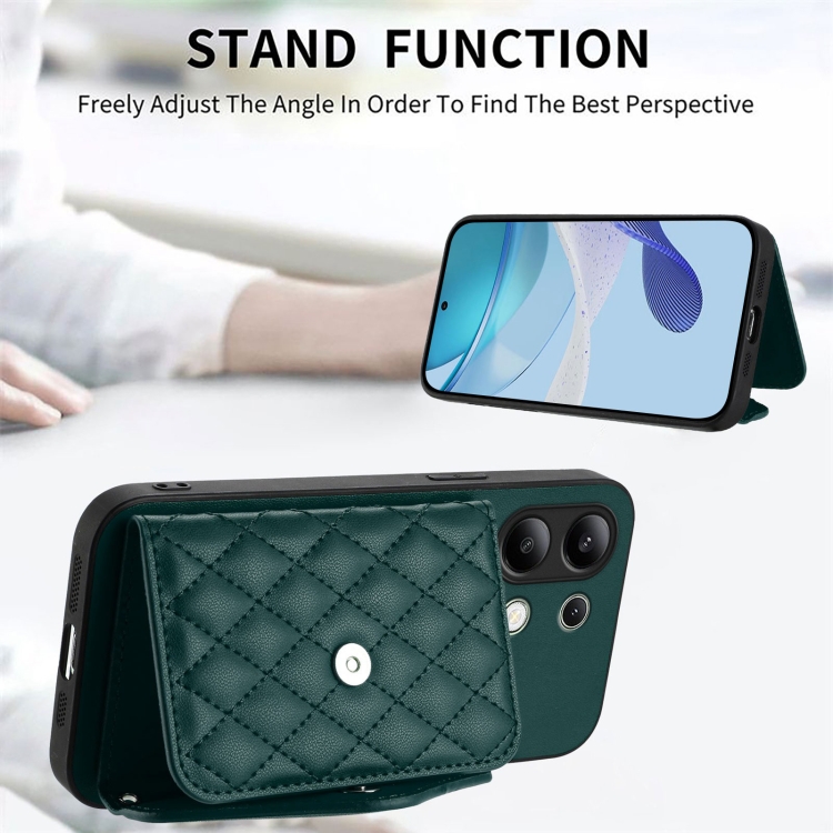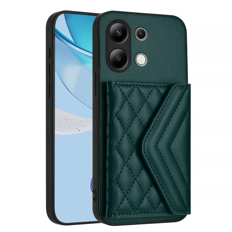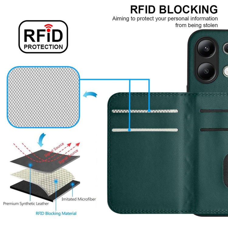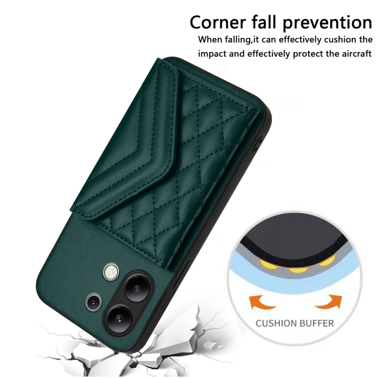 Funda para Teléfono con Textura Rómbica Global y Rfid para Redmi Note 13 4G con Cordón Largo (Verde)