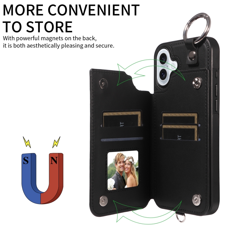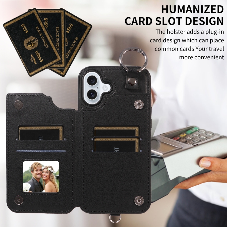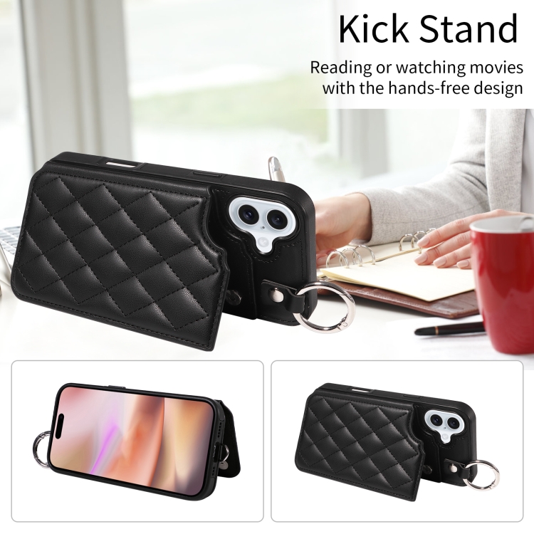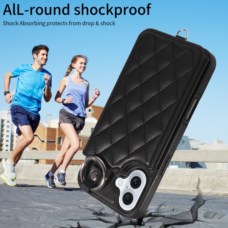 Funda para Teléfono iPhone 16 Plus Textura Rómbica Cordón Corto (Negro)