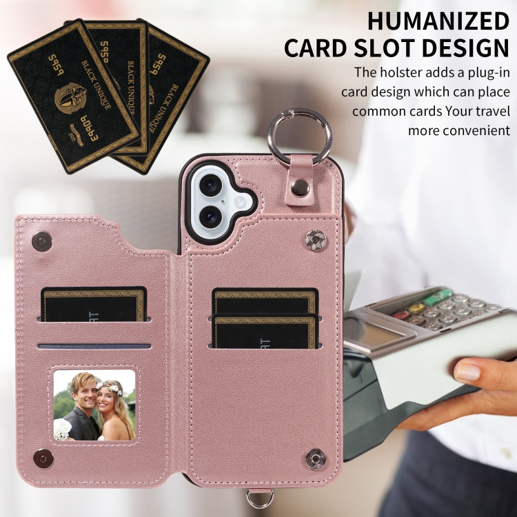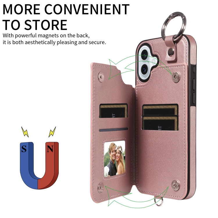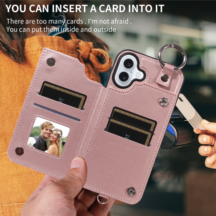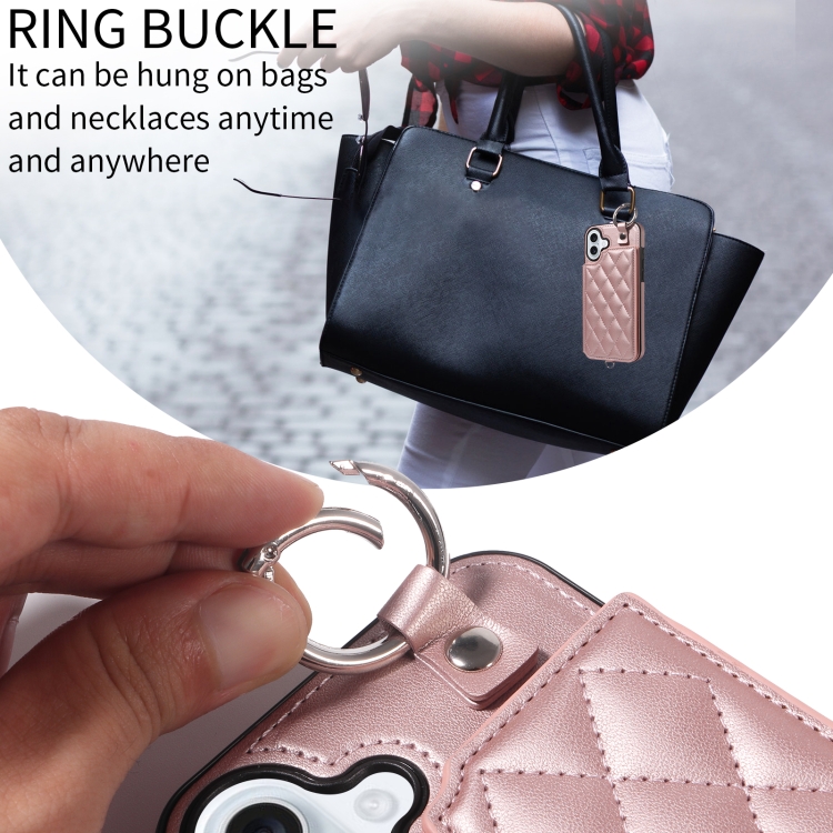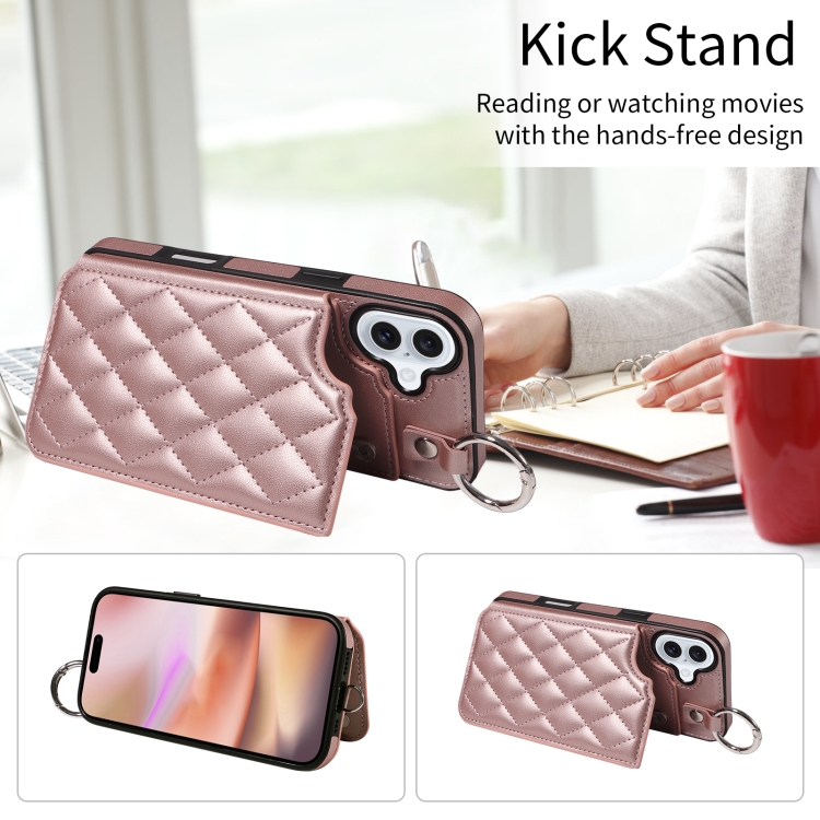 Funda para Teléfono Apple iPhone 16 Plus Textura Rómbica Cordón Corto (Oro Rosa)