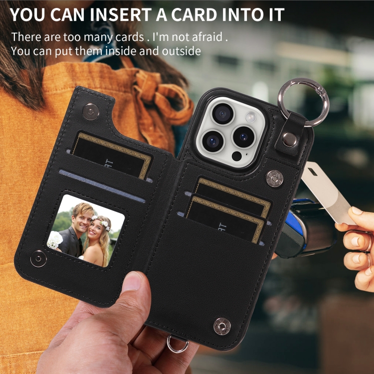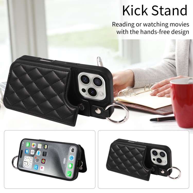 Funda para Teléfono iPhone 16 Pro Textura Rómbica Cordón Corto (Negra)