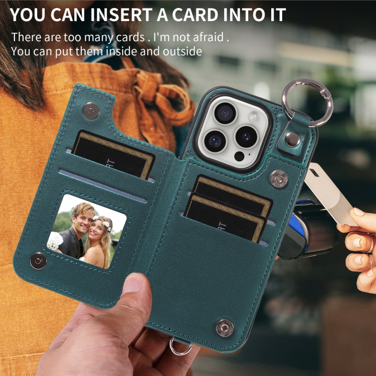 Funda para Teléfono Apple iPhone 16 Pro Textura Rómbica Cordón Corto (Verde)