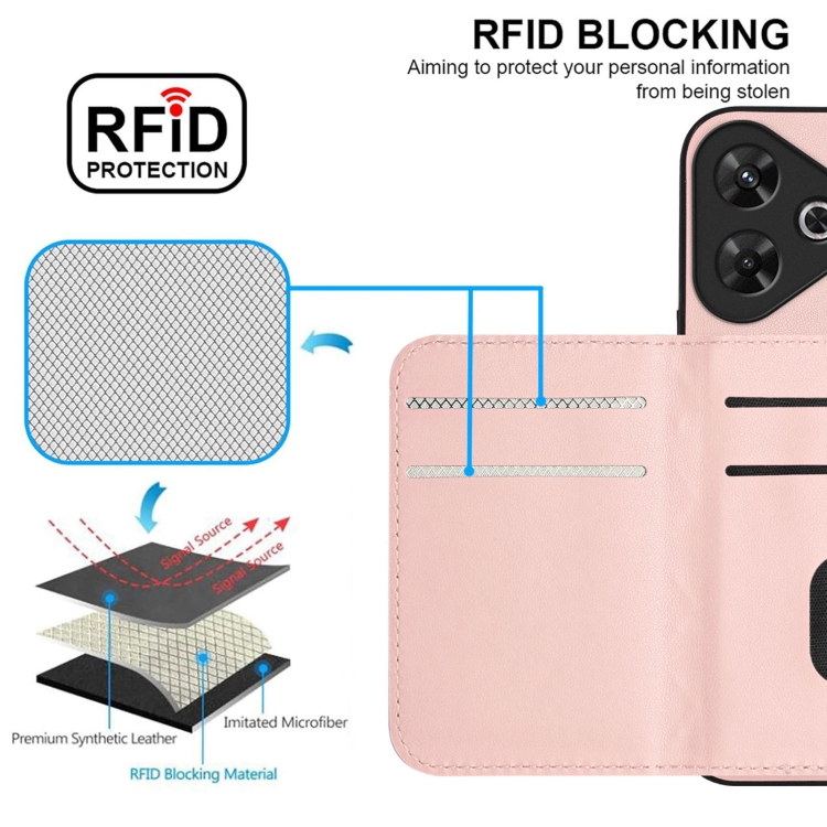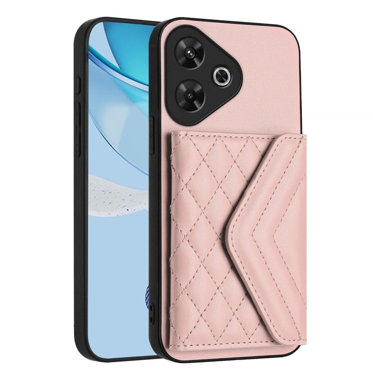 Funda para Teléfono con Textura Rómbica y Rfid para Redmi Note 13R Pro/13 4G (Oro Rosa)