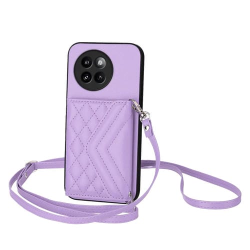 Funda para Teléfono con Textura Rómbica y TaRJetero Rfid para Xiaomi Civi 4 Pro con Cordón Largo (Morado Claro)