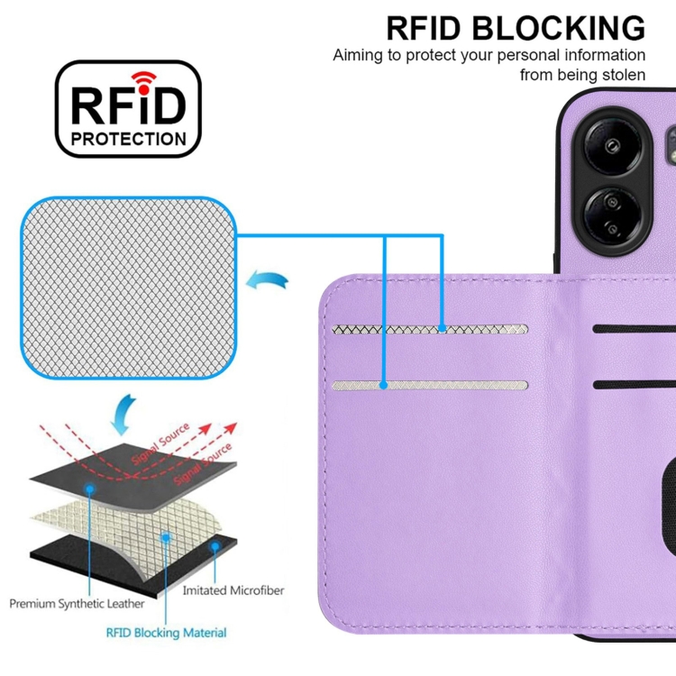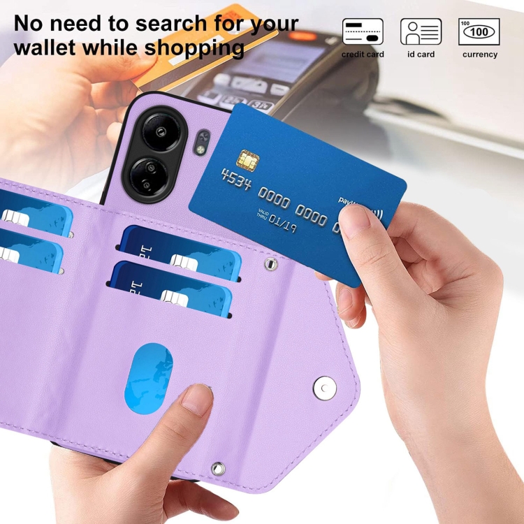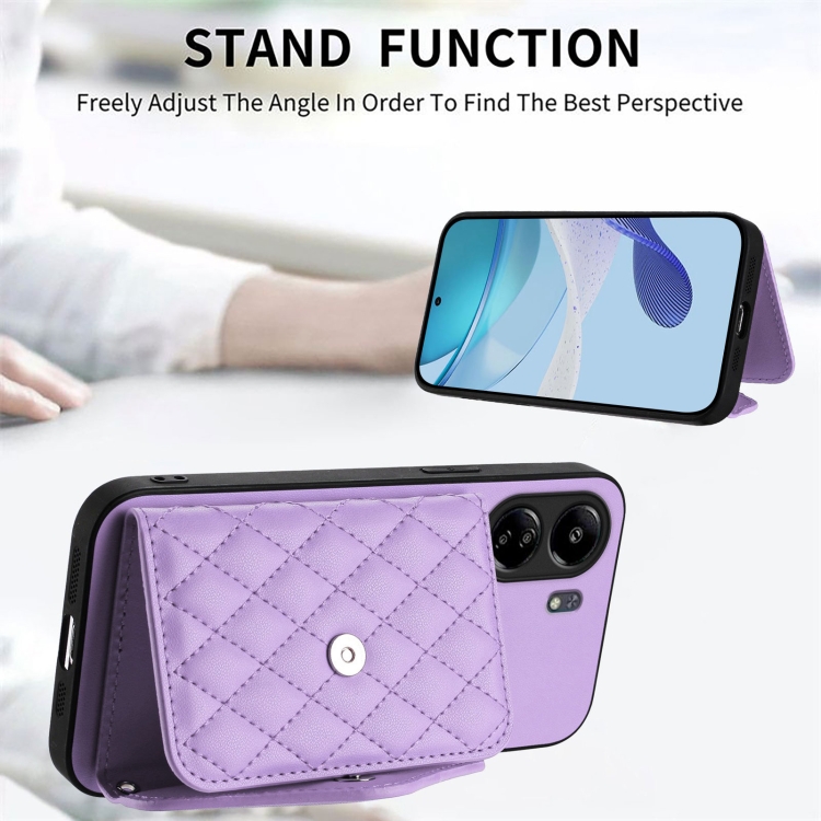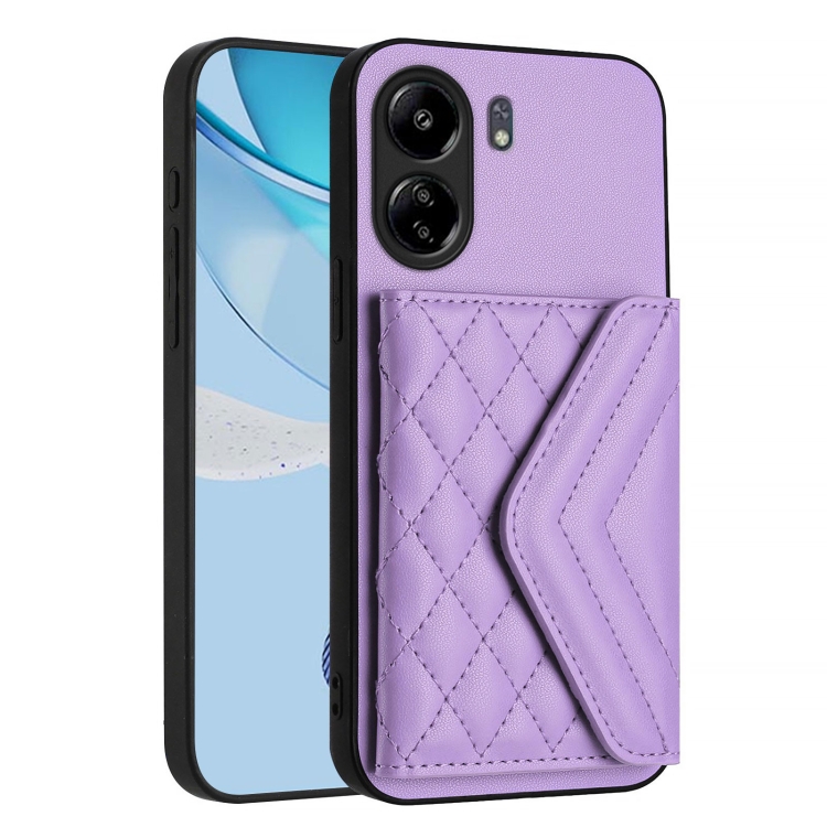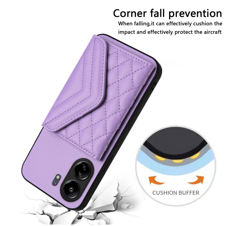 Funda para Teléfono con Textura Rómbica y TaRJetero Rfid para Xiaomi Poco C65 con Cordón Largo (Morado Claro)