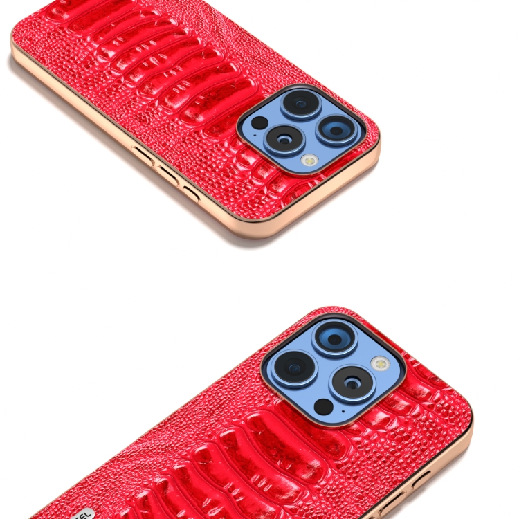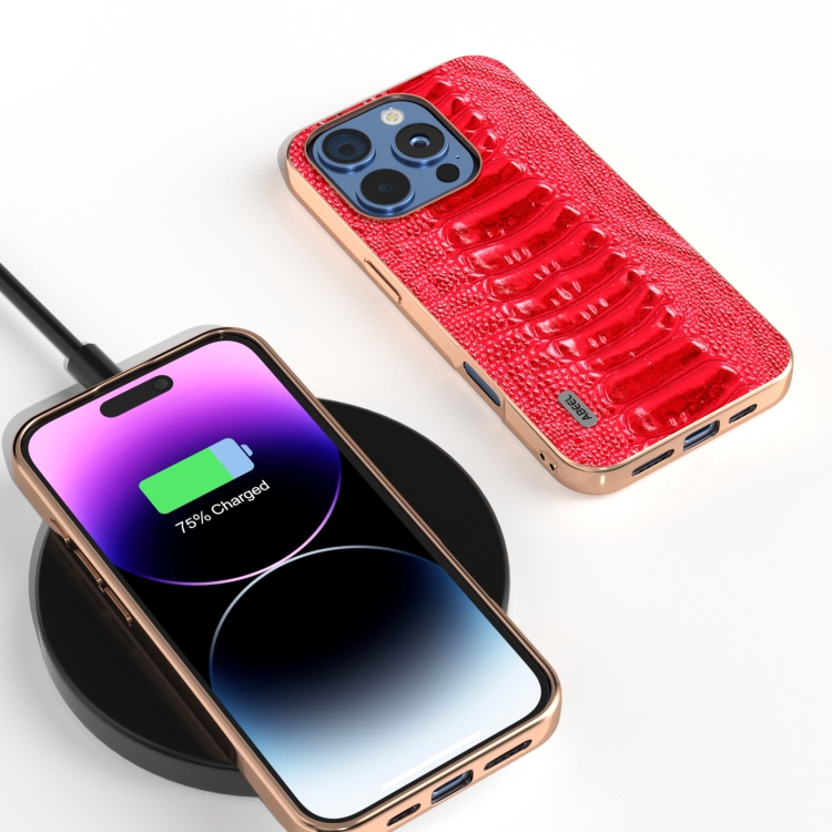 Funda para Teléfono Abeel Serie Weilai Cuero Genuino Marco Galvanizado iPhone 16 Pro Max (Rojo)