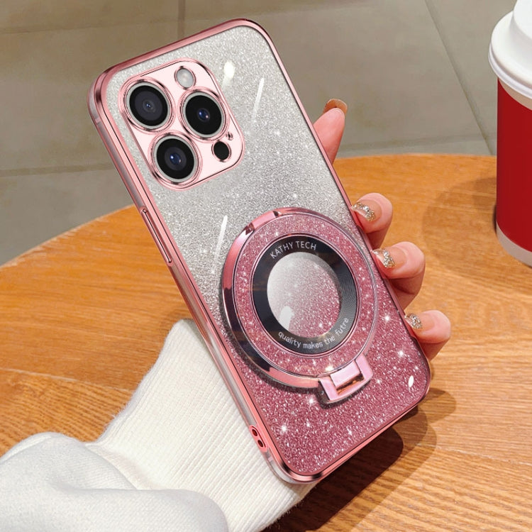 Funda para teléfono TPU con soporte redondo purpurina degradada para iPhone 16 Pro (Rosa)