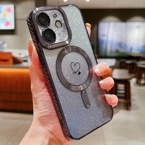 Funda para Teléfono TPU Magsafe Fibra de Carbono Purpurina Degradada iPhone 12 (Negra)