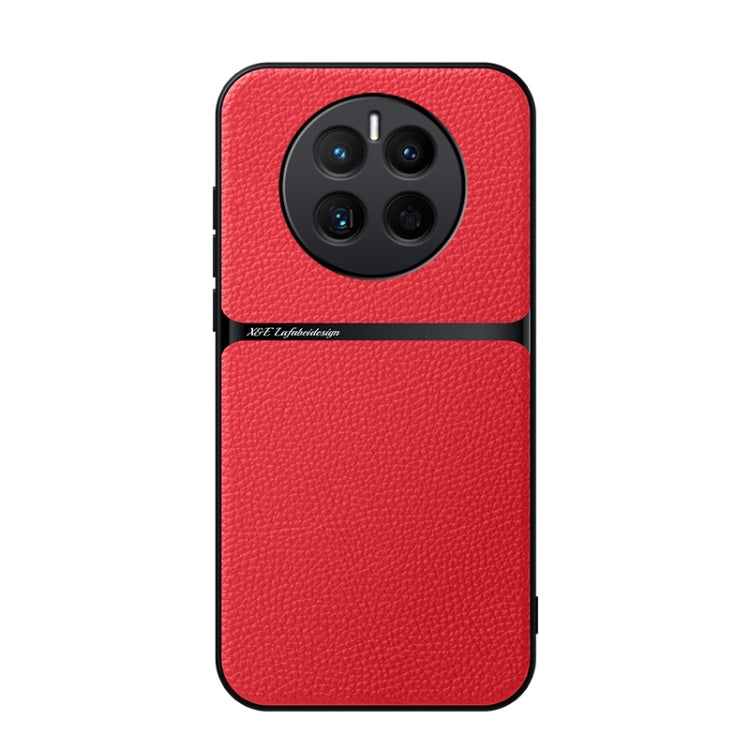 Funda para Teléfono Huawei Mate 50 Piel de Lichi Cobertura Total Magnética (Roja)