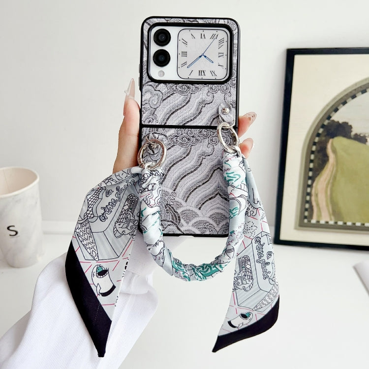 Funda para Teléfono Huawei Nova Flip Bordado Nubes Cobertura Total con Bufanda/Pulsera (Gris)