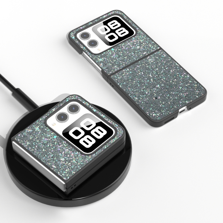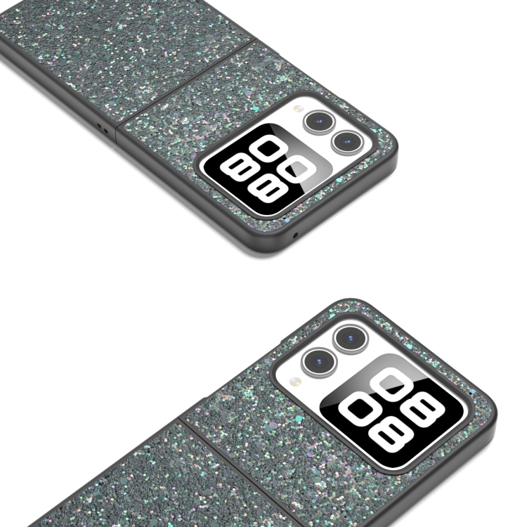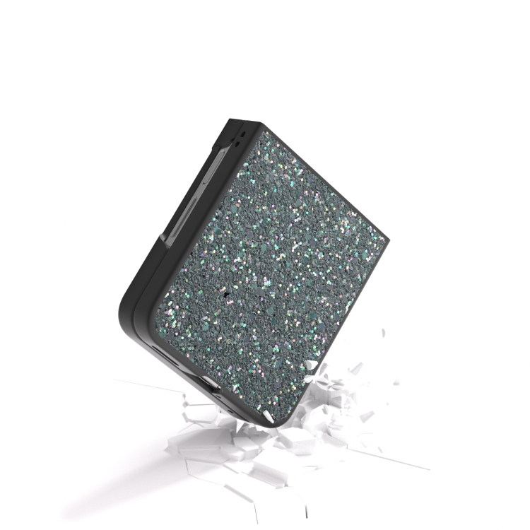 • 1x Funda para Teléfono Huawei Nova Flip con Marco Negro y Purpurina Colorida (Negro y Verde)