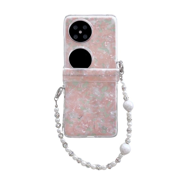 Funda para Teléfono Huawei P50 Pocket Textura Perlada en Tres Partes con Pulsera (Rosa y Verde)