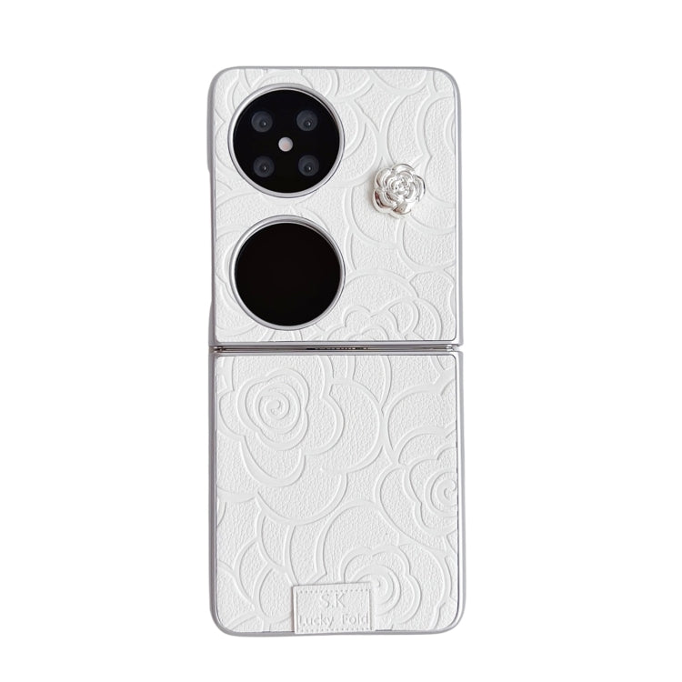 Funda para Teléfono Huawei Pocket 2 Diseño de Cuadros 3D Camelia (Blanca)