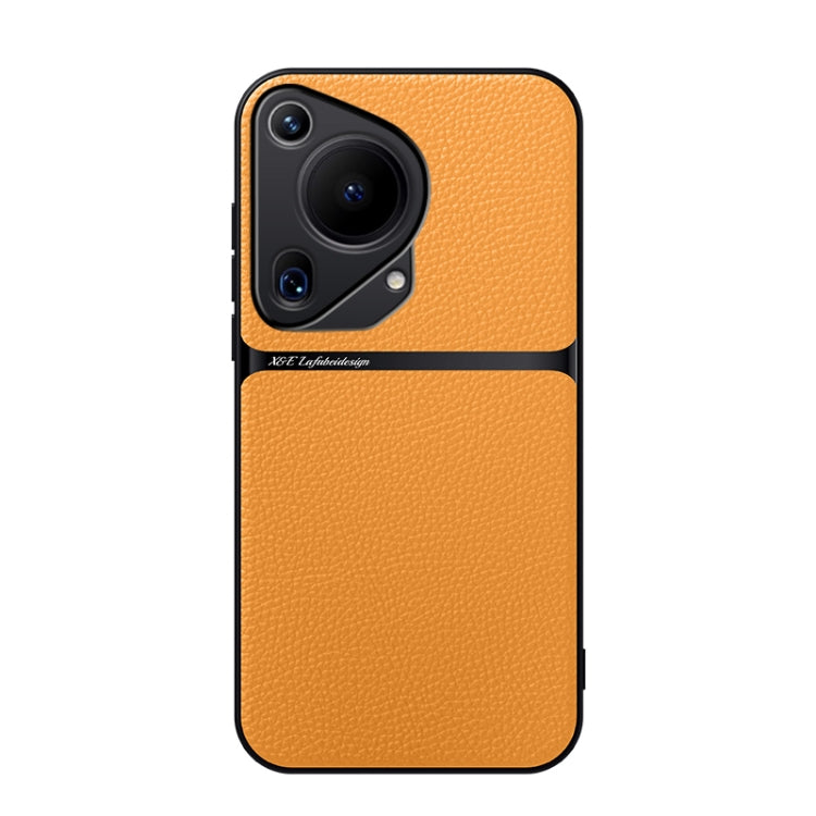 Funda para Teléfono Huawei Pura 70 Ultra Piel de Lichi Cobertura Total Magnética (Amarilla)