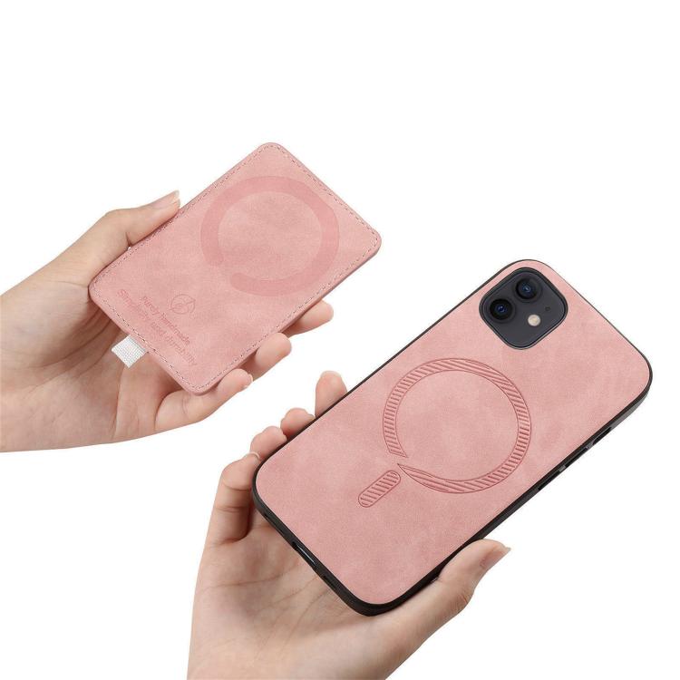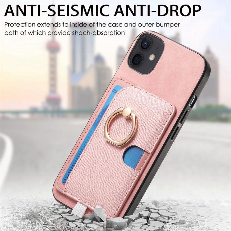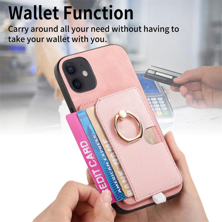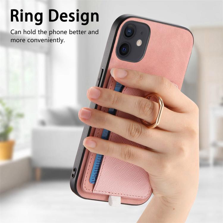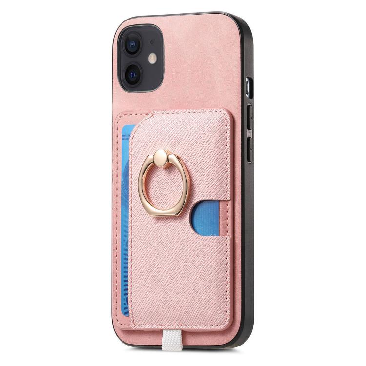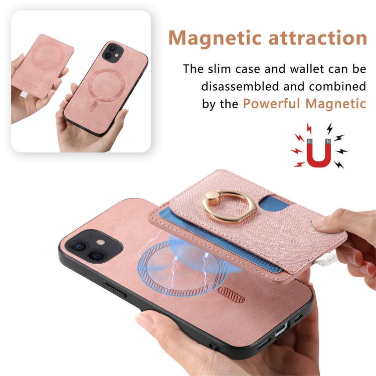 Funda para Teléfono Magsafe Cuero Diseño Retro Cruzado con Ranuras y Anillo Lateral para iPhone 12/12 Pro (Rosa)