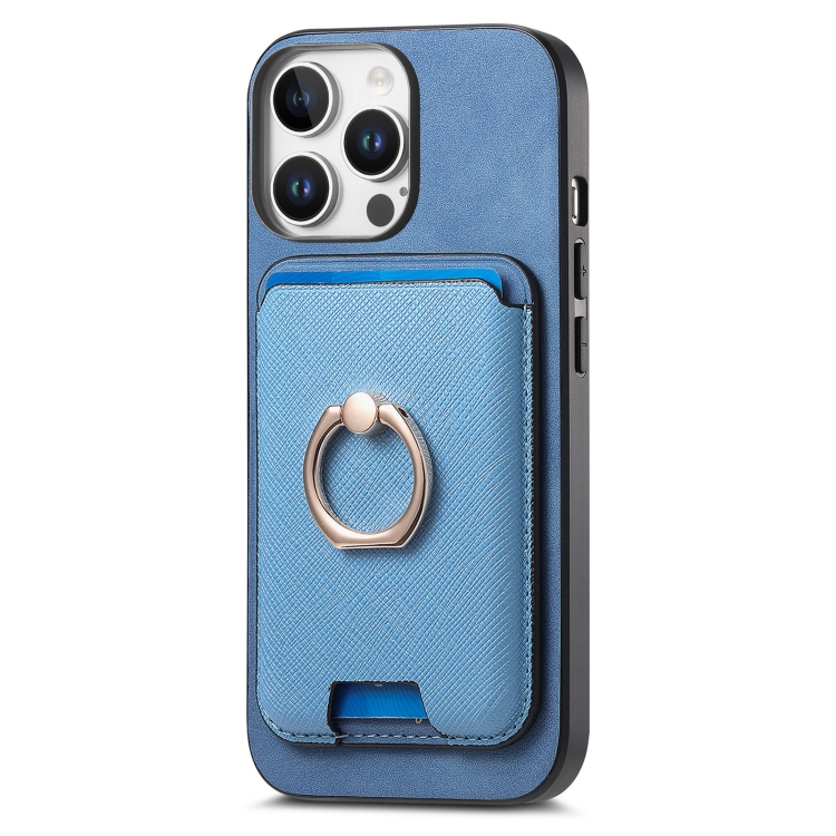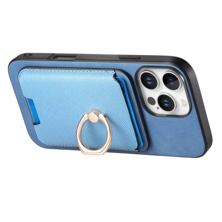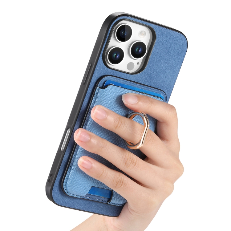Funda para Teléfono Magsafe con Tarjetero de Cuero Estilo Retro Diseño Cruzado para iPhone 16 Pro (Azul)