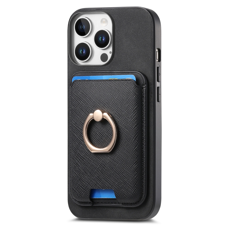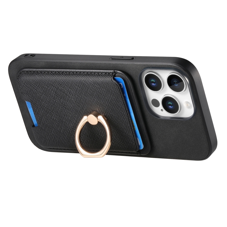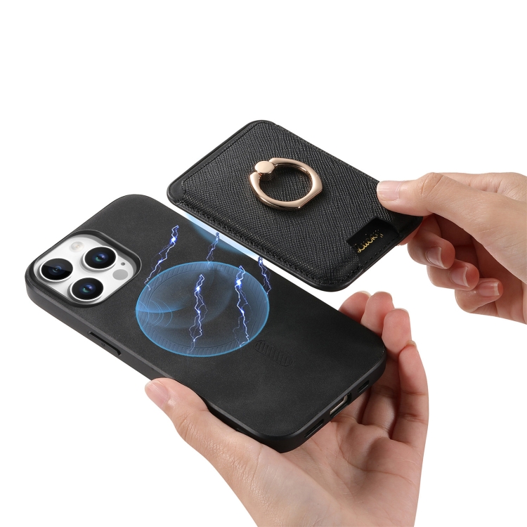 Funda para Teléfono Magsafe iPhone 16 Pro Cuero Estilo Retro Diseño Cruzado (Negro)