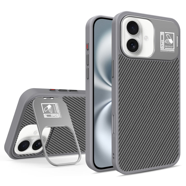 Funda para Teléfono Magsafe Fibra de Carbono Soporte Plegable iPhone 16 (Gris)