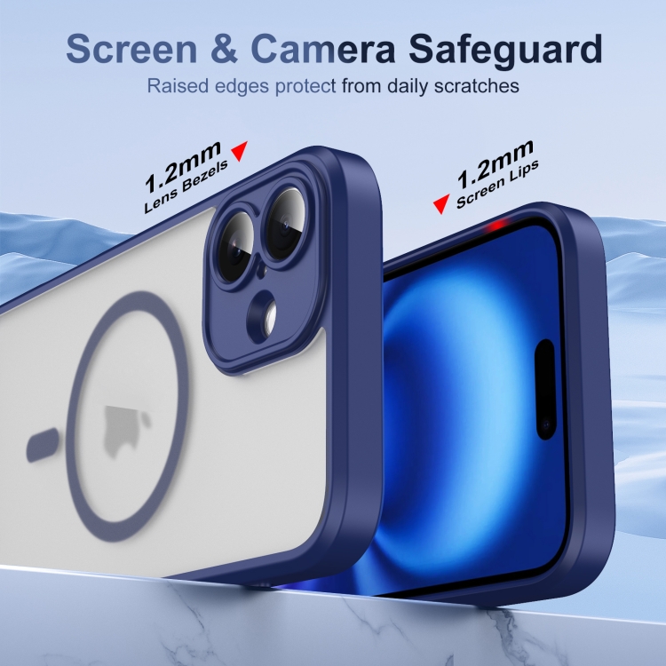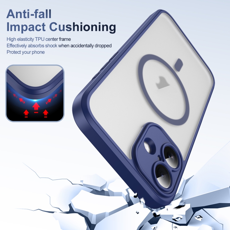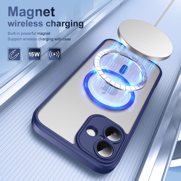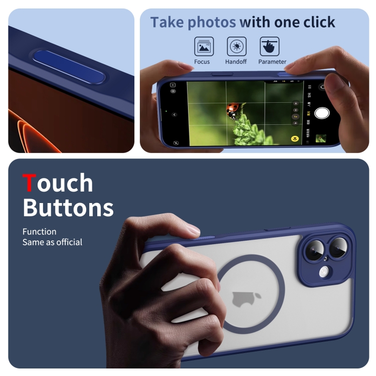 Funda para Teléfono Magsafe Translúcida Esmerilada con Botón Ai para iPhone 16 Plus (Azul)