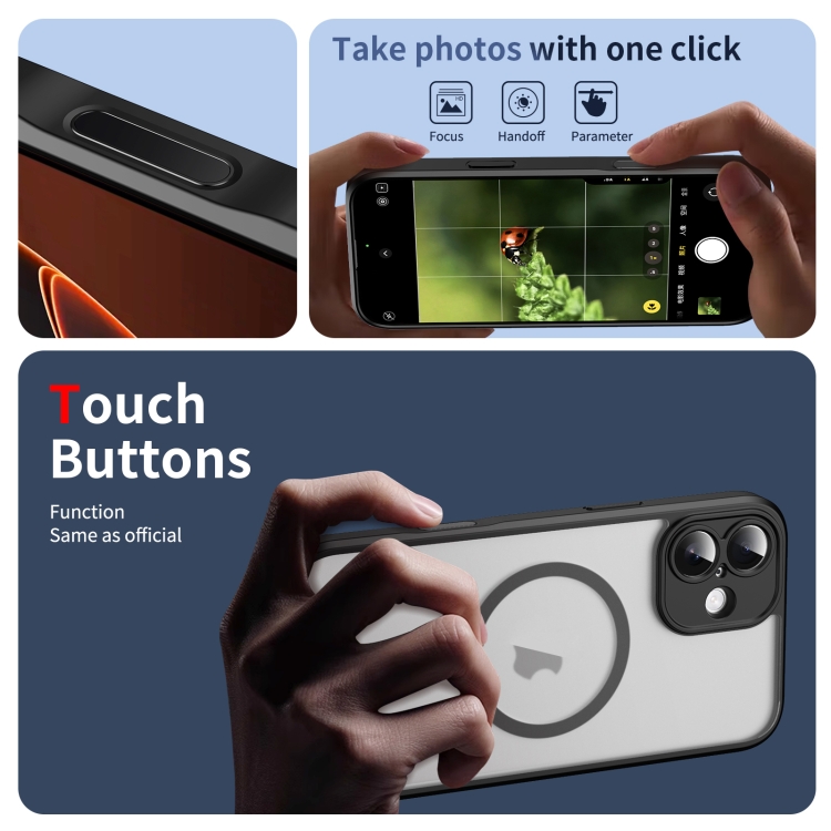 Funda para Teléfono Magsafe Translúcida Esmerilada con Botón Ai para iPhone 16 Plus (Negra)