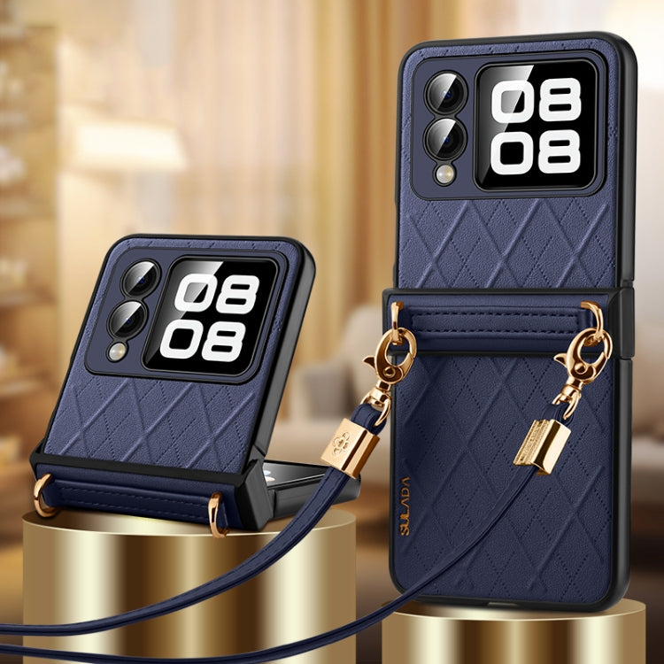 Funda para Teléfono Plegable Huawei Nova Flip con Textura Rómbica y Cordón (Azul)