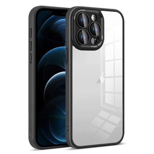 Funda para Teléfono iPhone 12 Pro Max Transparente con Película Protectora de Lente y Armadura Colorida (Negro)