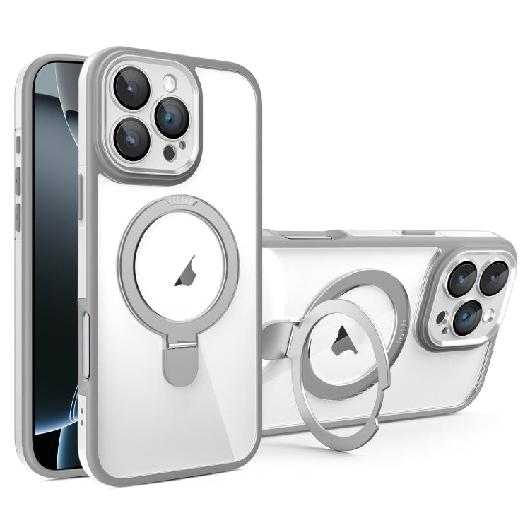 Funda para Teléfono Apple iPhone 16 Pro Transparente con Soporte Magsafe y Película de Cobertura Total (Gris y Blanco)