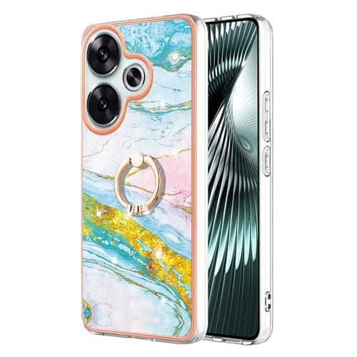 Funda para Teléfono Xiaomi Poco F6 5G con Galvanoplastia de Mármol Imd TPU y Soporte para Anillo (Verde 004)