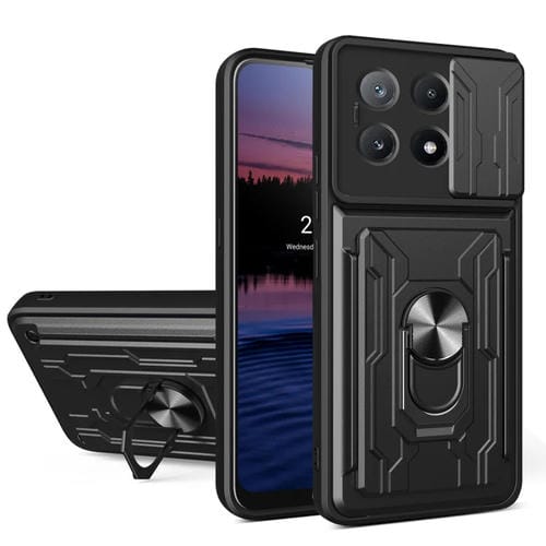 Funda para Teléfono Xiaomi Poco X6 Pro con Ranura para Tarjeta y TPU + PC Deslizante (Negro)