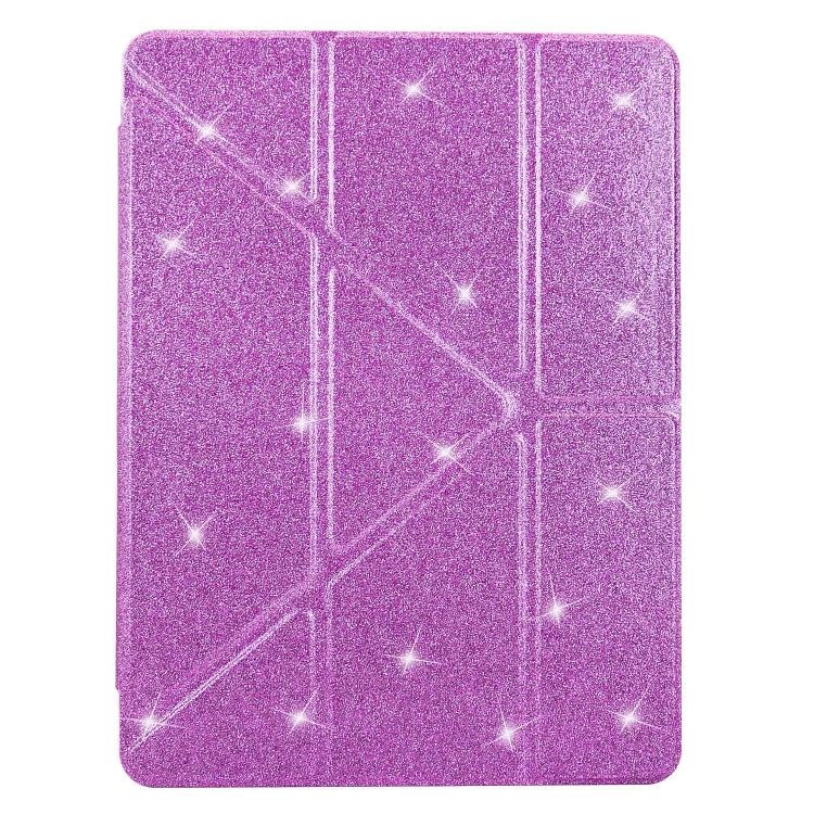 Funda plegable en Y de acrílico transparente con purpurina para iPad 10.2 (2021) y Air 10.5 (morado)
