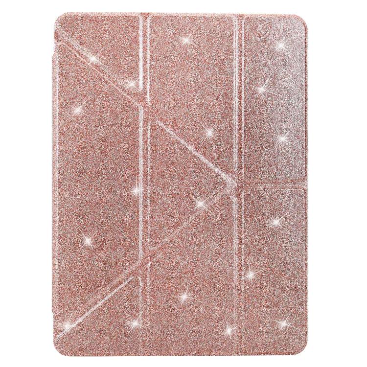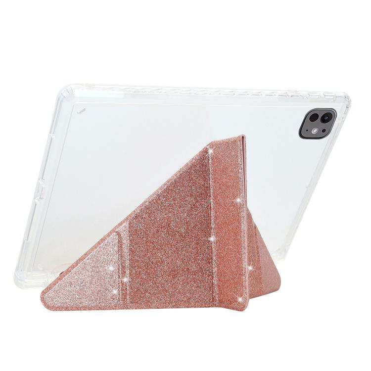 Funda plegable en Y de acrílico transparente con purpurina para iPad Air 13 (2024/2025/Pro 12.9) (oro rosa)