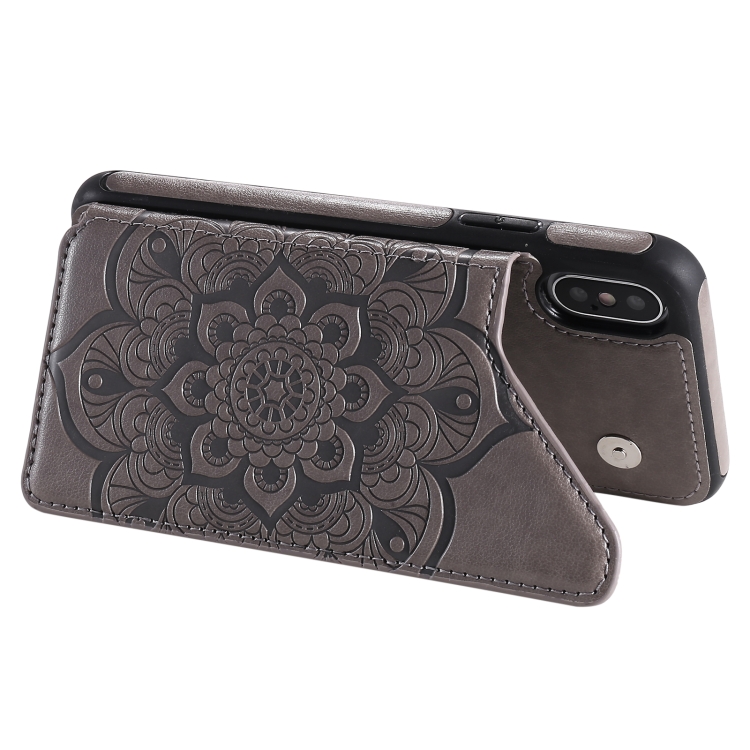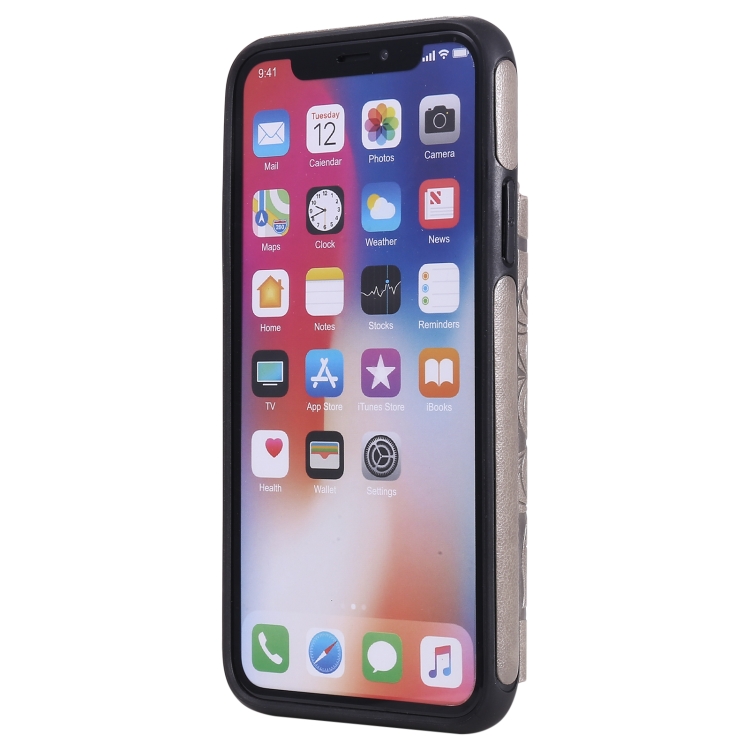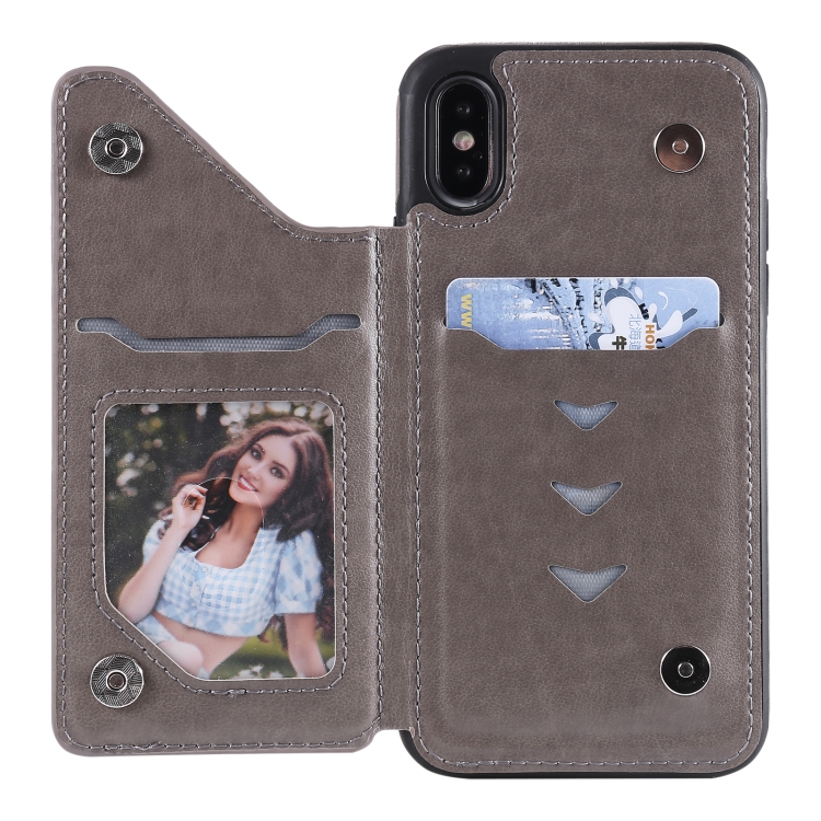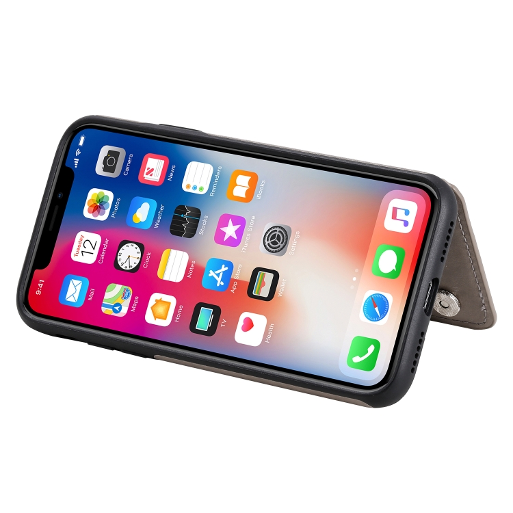 Funda Protectora para iPhone X Xs con Soporte Ranuras Tarjetas Marco Fotos (Gris)
