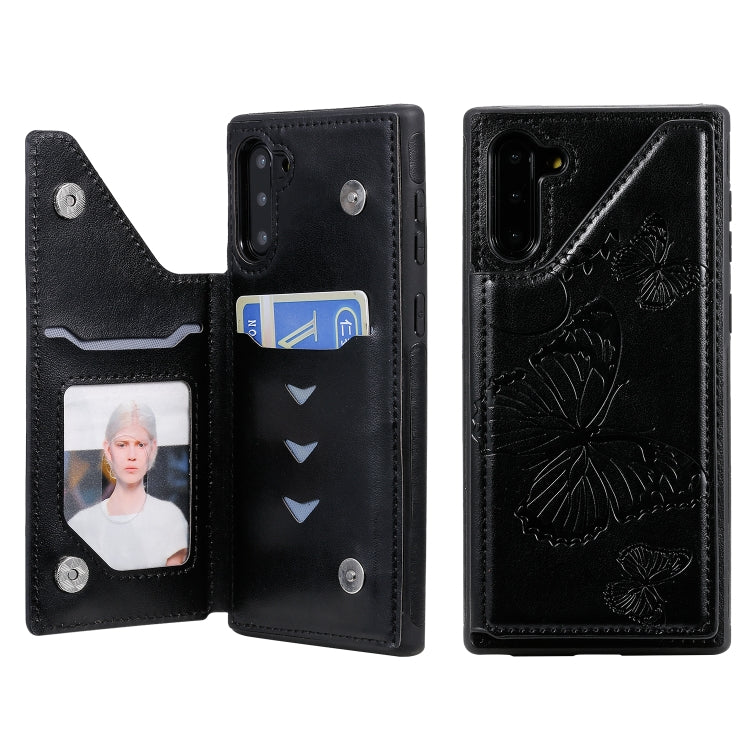 Funda Protectora Galaxy Note10 Estampado Mariposa Soporte Ranuras Tarjetas Marco Fotos (Negro)