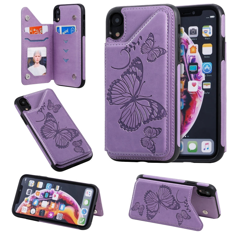 Funda Protectora para iPhone Xr con Soporte, Ranuras para Tarjetas y Marco de Fotos (Púrpura)