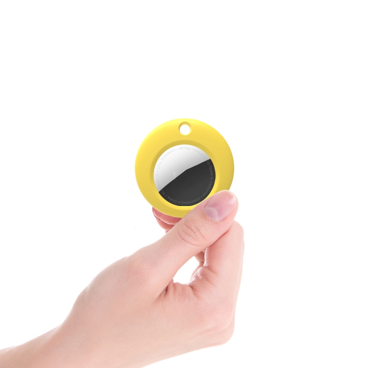 Funda Protectora Silicona para AirTag con Anillo de Llavero (Amarillo)