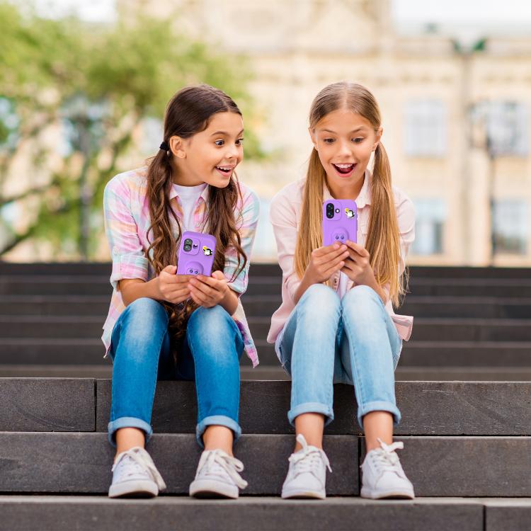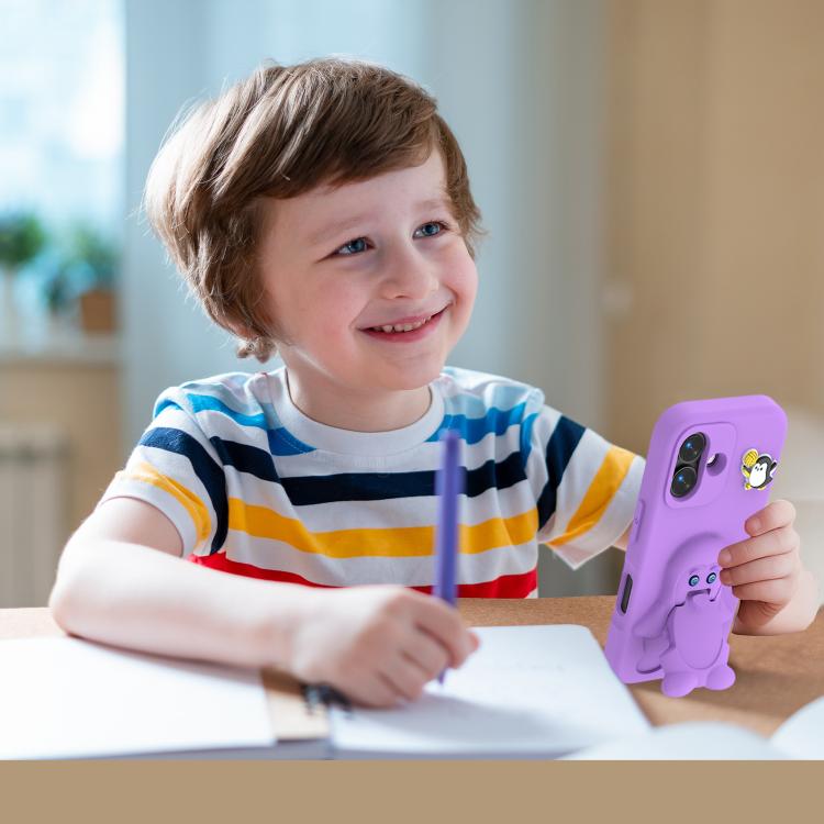 Funda protectora antigolpes Penguin Baby EVA para iPhone 17 con soporte (morada)