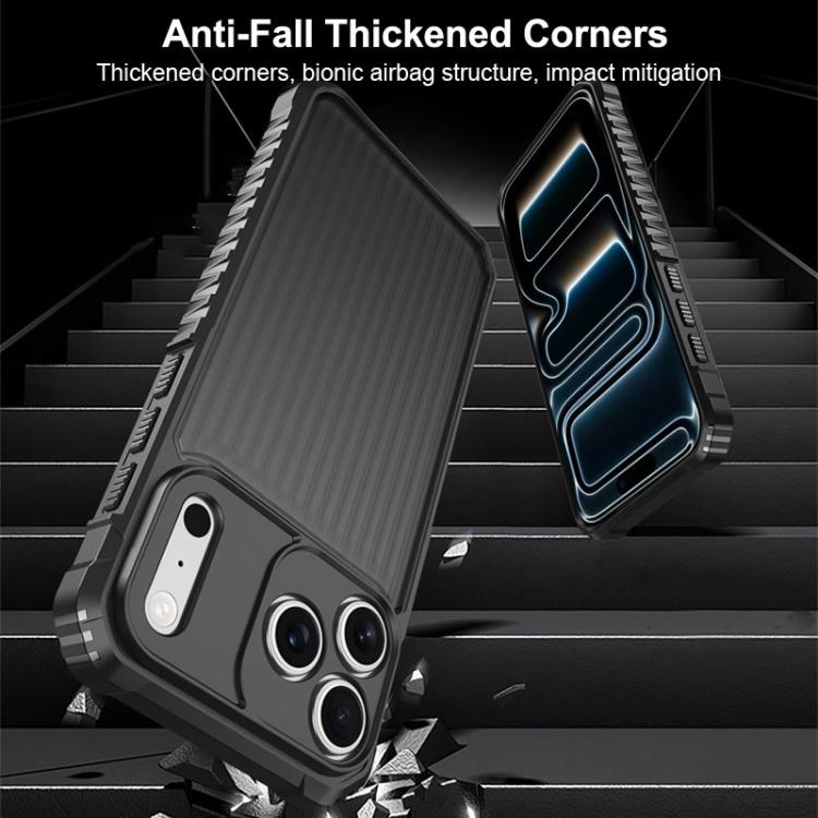 Funda protectora antigolpes War Shadow Stripe Series con airbag y acabado esmerilado para iPhone 17 Pro (Azul)