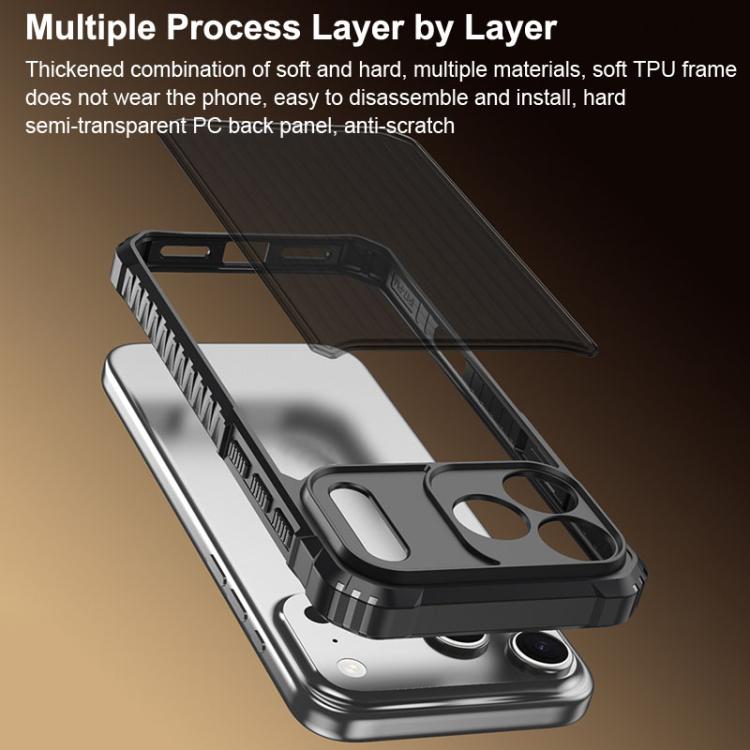 Funda protectora antigolpes War Shadow Stripe Series con airbag y acabado esmerilado para iPhone 17 Pro (Gris)