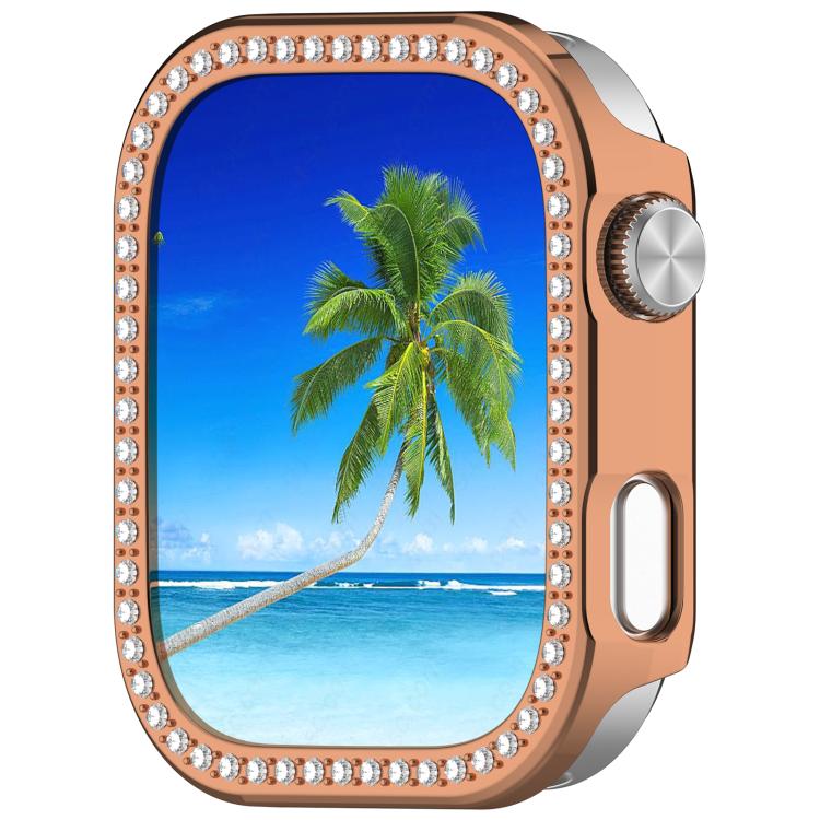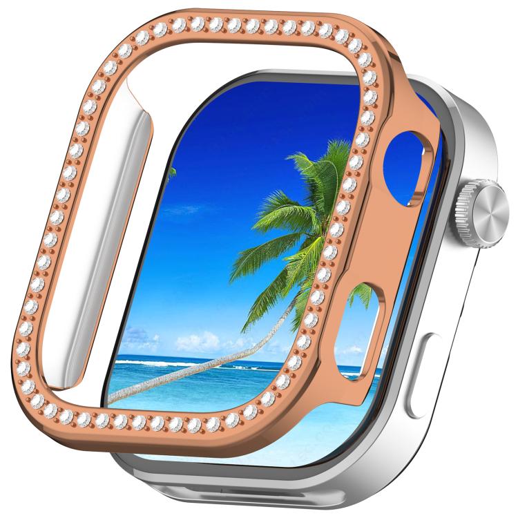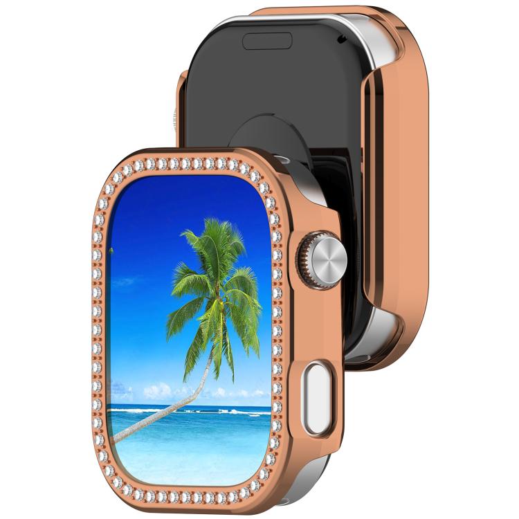 Funda protectora para Redmi Watch 6, de una sola fila, con diamantes y media cobertura, hueca para PC (oro rosa)