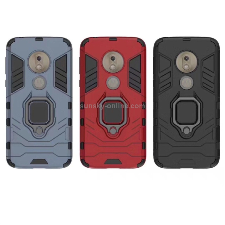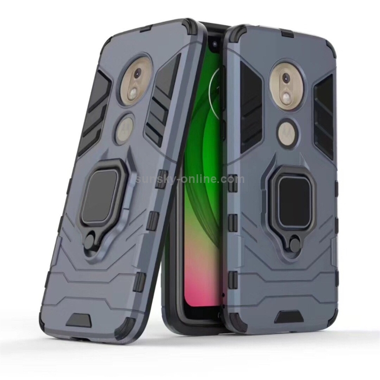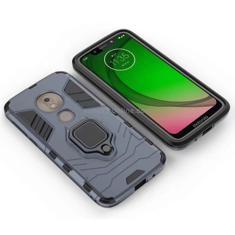 Funda Protectora PC + TPU para Motorola Moto G7 Play con Soporte Anillo Magnético (Azul Marino)