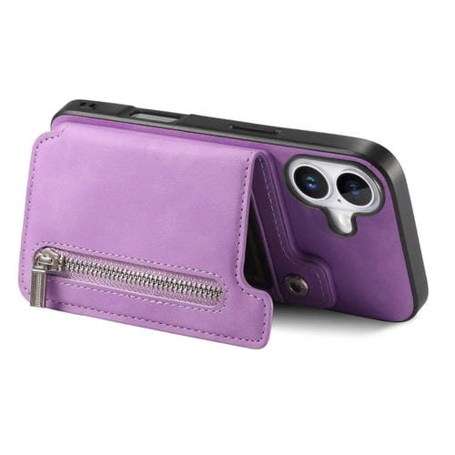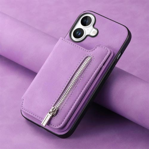 Funda retro con cremallera MagSafe para iPhone 17, tarjetero y bolsillo para tarjetas (morado)