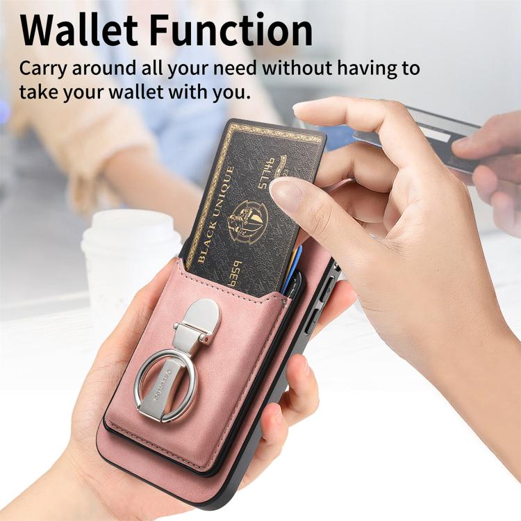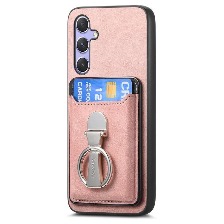 Funda retro plegable con anillo y tarjetero MagSafe para Samsung Galaxy A15 (rosa)
