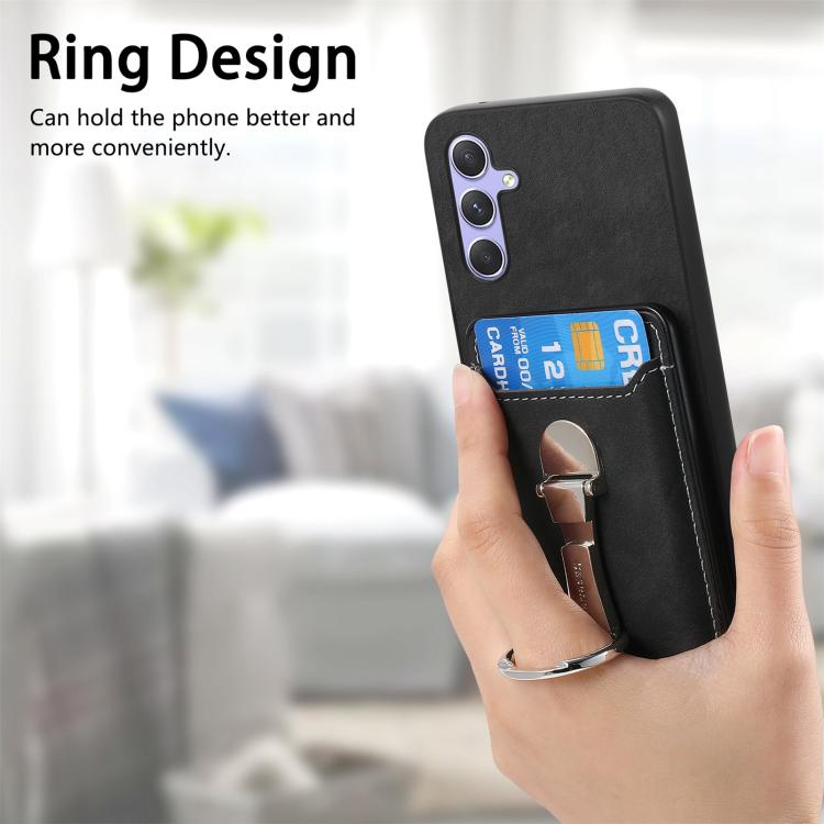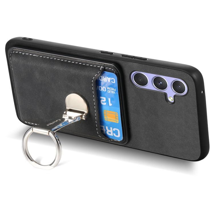 Funda retro plegable con anillo y tarjetero MagSafe para Samsung Galaxy A24 5G (negra)