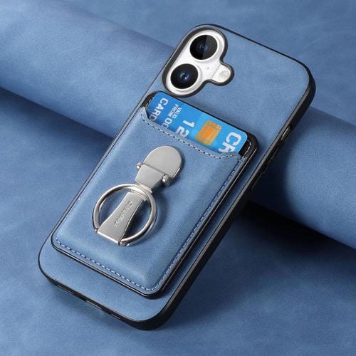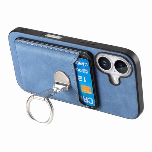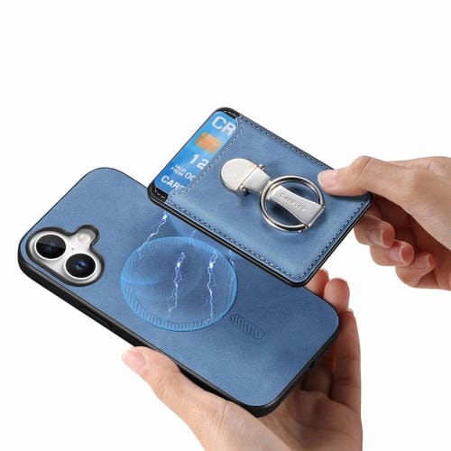 Funda retro plegable con anillo y tarjetero para iPhone 17, MagSafe (azul)