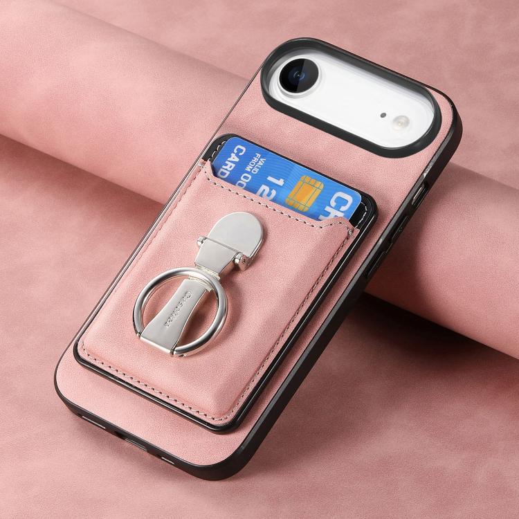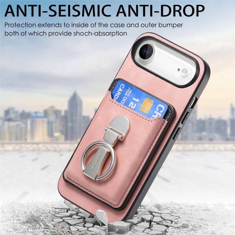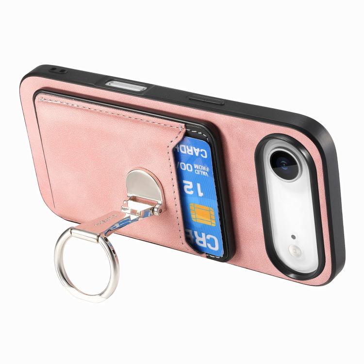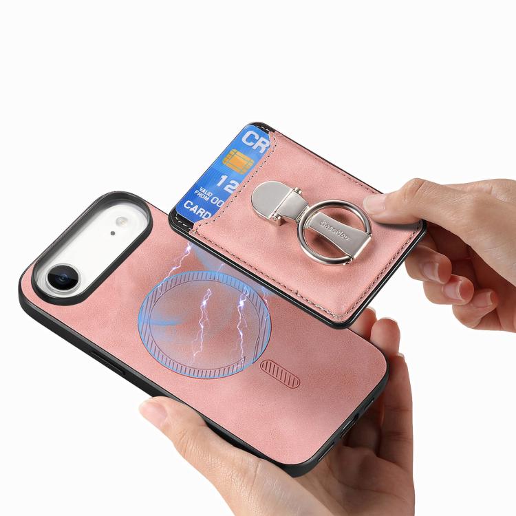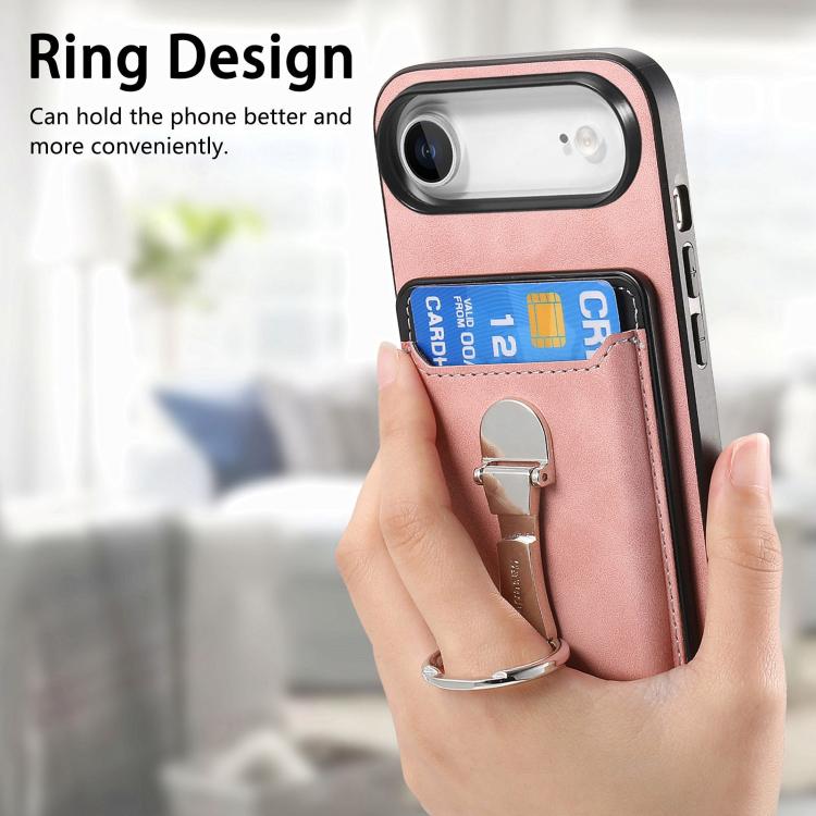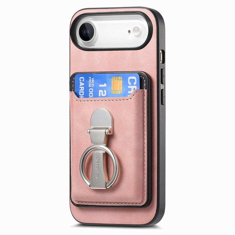 Funda retro plegable con anillo y tarjetero para iPhone Air, MagSafe (rosa)