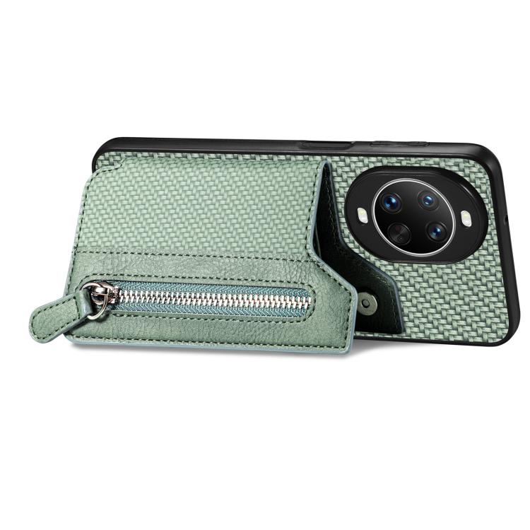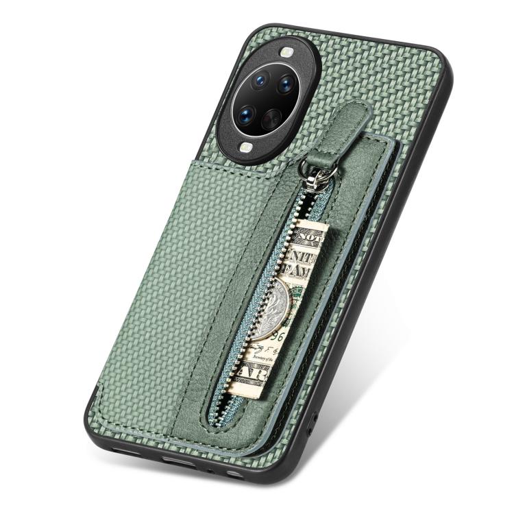 Funda tipo cartera con cremallera y tapa horizontal de fibra de carbono para Huawei nova 14 Pro (verde)