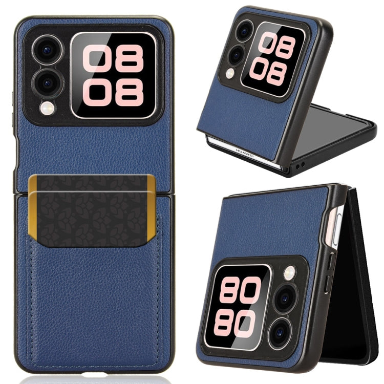 Funda Trasera Huawei Nova Flip con Ranuras para Tarjetas y Textura de Lichi (Azul)