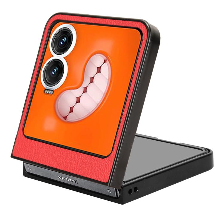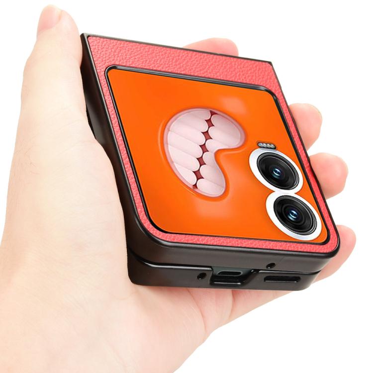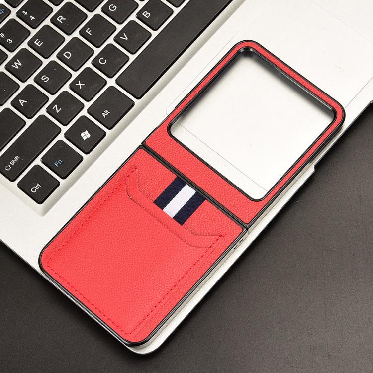 Funda Trasera para Tecno Phantom V Flip2 con Ranuras para Tarjetas y Textura Litchi (Roja)