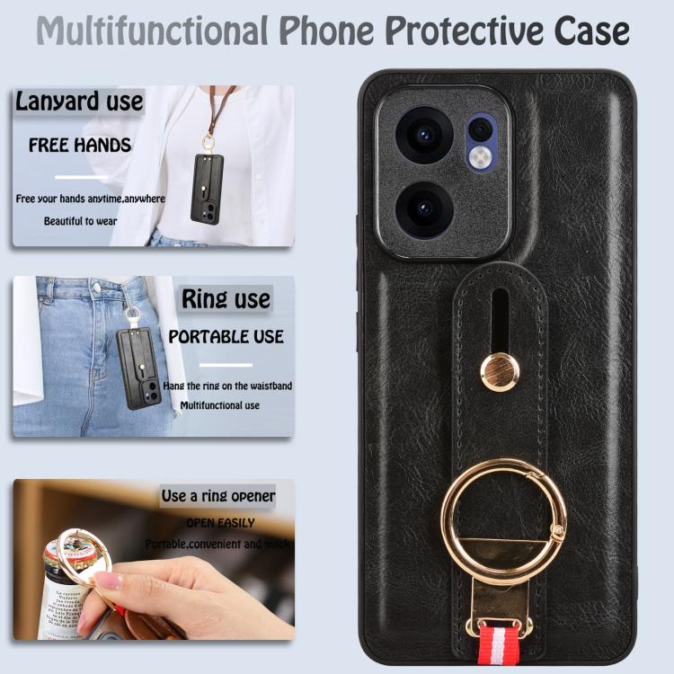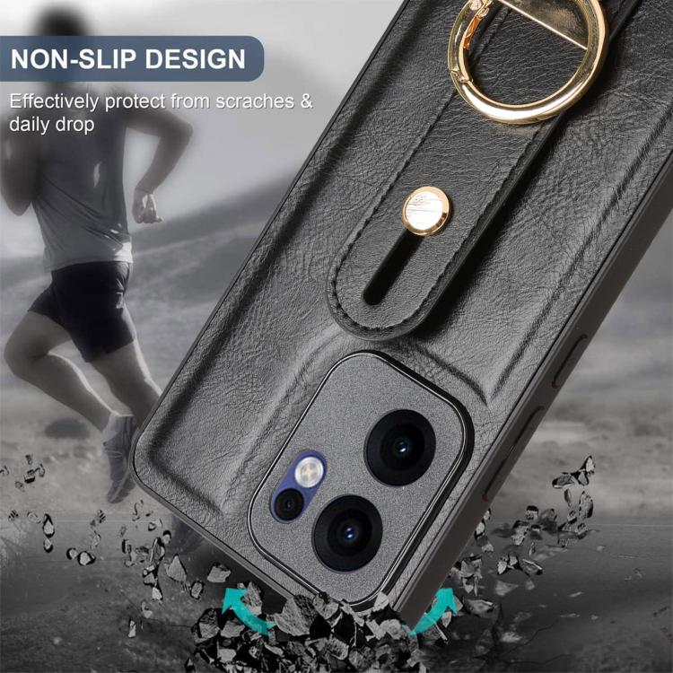 Funda Trasera de Cuero con Correa para El Brazo para Oppo Reno13 F 5G (Negra)