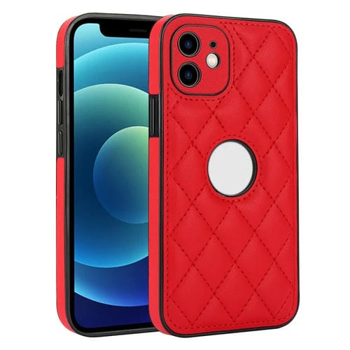 Funda Trasera Cuero iPhone 12 Diseño Rombos (Roja)