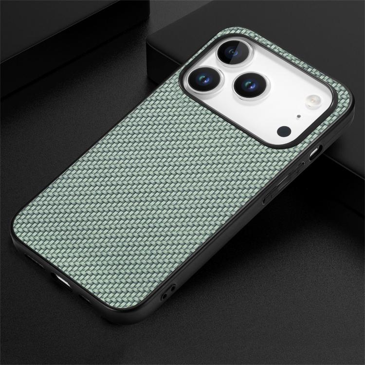 Funda trasera de cuero con textura de fibra de carbono para iPhone 17 Pro Max (verde)